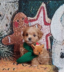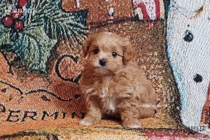 General information: Tiny Toy size F1 Moodle Male. Gentle temperament. Moodles love to play as much as they love to cuddle and make terrific companion dogs. Moodles are easy to train, and are a great choice for first-time dog owners. They are bright eyed, loving little souls.
