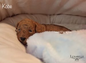 General information: Toy size F1b Moodle male. Gentle temperament. Moodles love to play as much as they love to cuddle and make terrific companion dogs. Moodles are easy to train, and are a great choice for first-time dog owners. They are bright eyed, loving little souls.