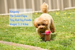 Sire: Kingsley. Purebred Ruby Red Tiny Toy Poodle. 2.2kgs. Orivet DNA tested clear for Poodle.